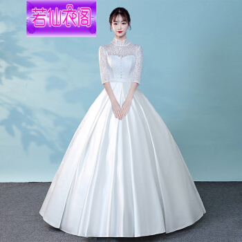 若仙衣阁ウェディングディングディングディングドレス女性の新型の新妇中袖詰め襟大きさのサイズロググのウェディングドレス锻炼スカート(1358-1)XL号-特大「ウエスト2.3尺」