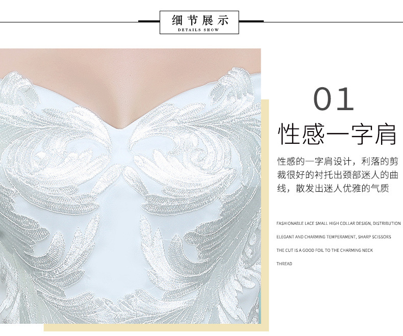 若仙衣阁オーフ・ショルダーのウェディングドレス新モデル影楼シンプの新婦の結婚ローリング・スカートローリングモデル(白)L号-大きサズ『ウエスト2.1尺』