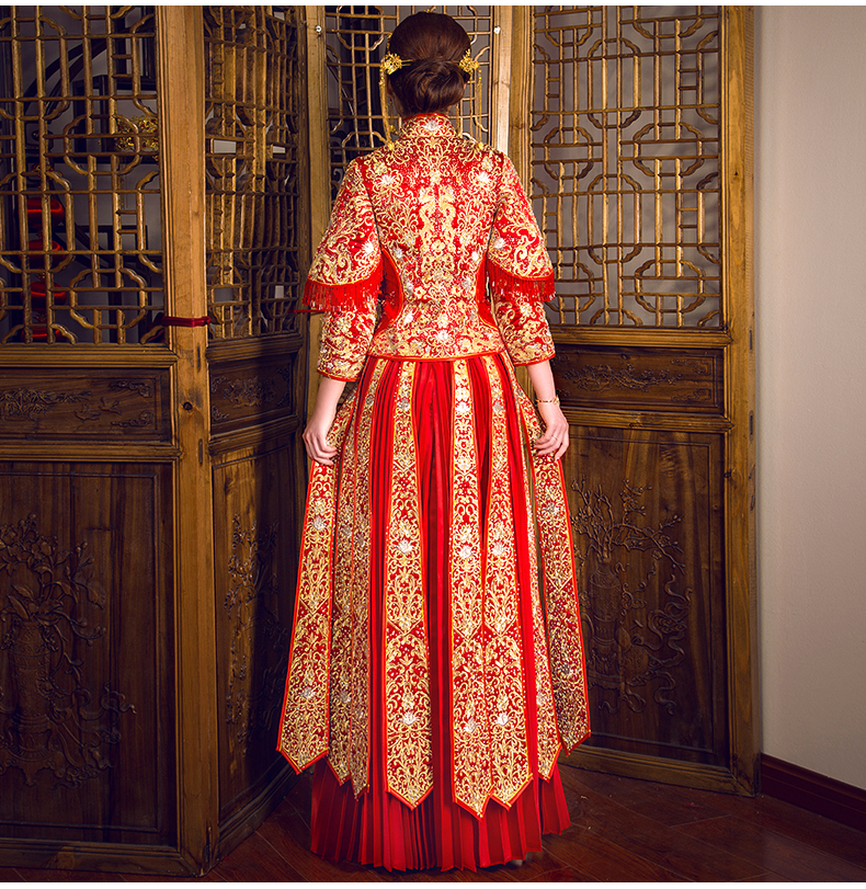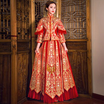 ネットでは、ベーシストショー禾服新婦2018新式結婚龍鳳衣中華風ウェルディドレス時代乾杯時間用ドレス夏スカートM