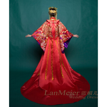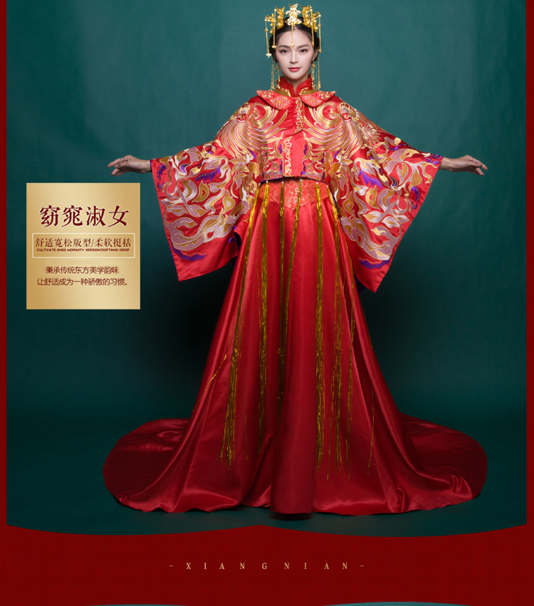2018新型ショー禾服中華風レトロ喜服龍鳳服敬酒ドレス新婦服装結婚式ウェディングドレス紫袖里紫紫花原引M