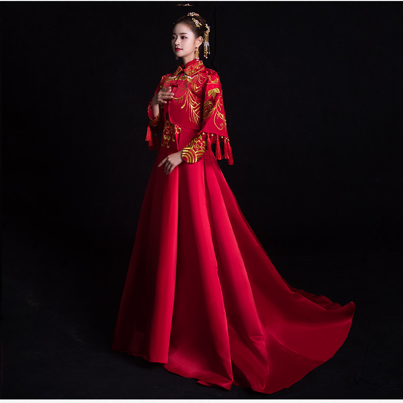 秀禾服新婦2018新型龍鳳服長袖結婚服春乾杯時間はドレストロチャイナドレス中華風結婚服ロググ赤いショー禾XLを使います。