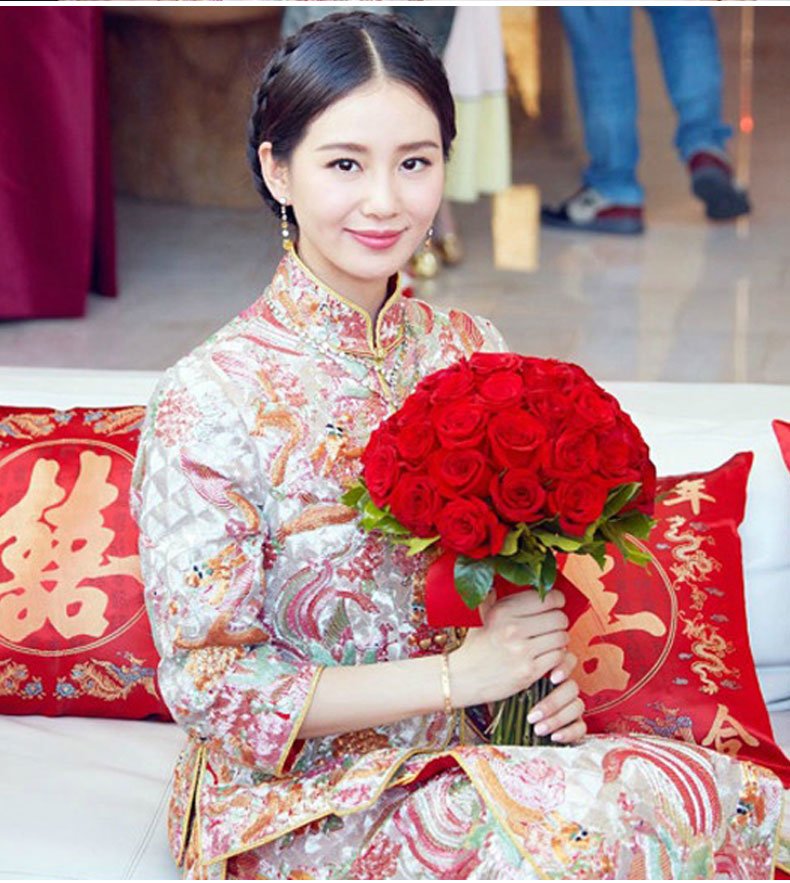 劉詩詩とじスタイイネ服2018新款龍鳳服新婦ウェルディドレス結婚中華風乾杯時間はドレスアップ服女装ショー禾服+モデル同じス首飾りL