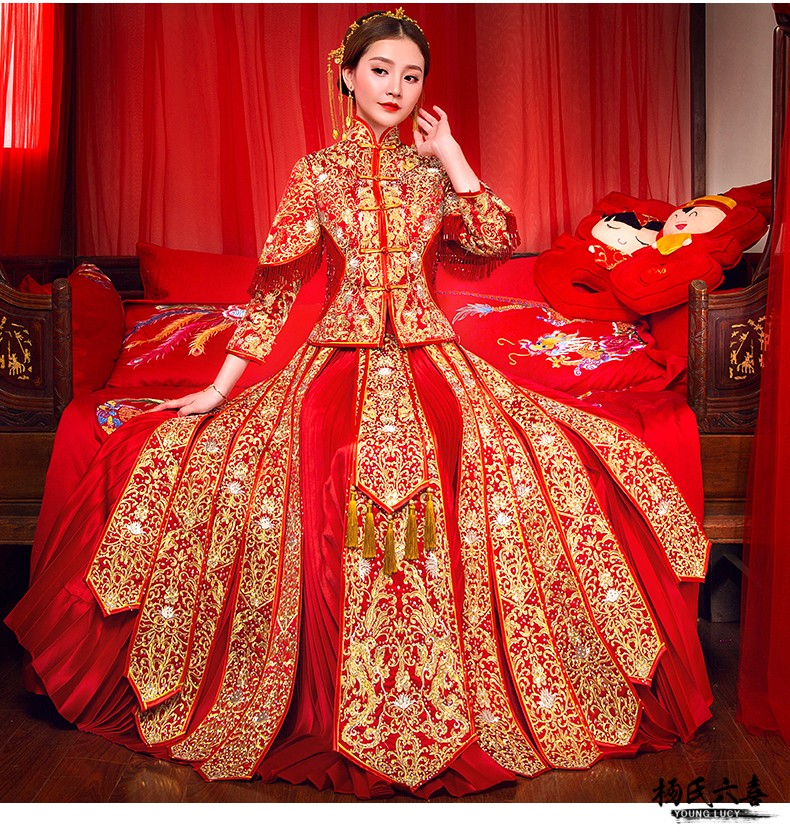 楊氏六喜ブランドTIKTOKは、同じじスタイ清心Vcショー禾服新婦2018新式龍鳳服中華風ウェルディと結婚時のドレスをMに並べています。