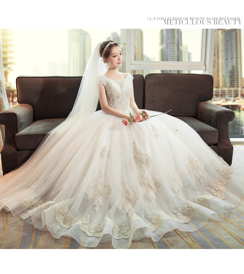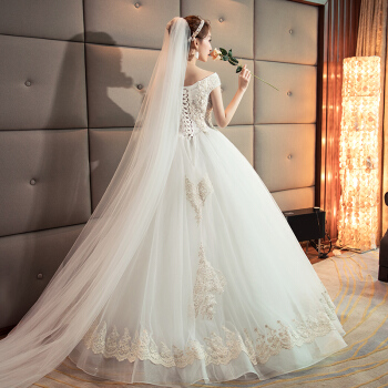 双肩ウェルディ・レンググ2019新型シャコアレル女新婦v領スティム夢まぼろしロングムウェディングプリンセス白ロングM