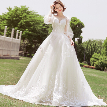 SHIGUANGBEANウェディングディングディングディングディングディングドレス新婦2019新型泡袖ウェディングベールコリアスタラグジュアリードレインセクシーVネックセレモニー