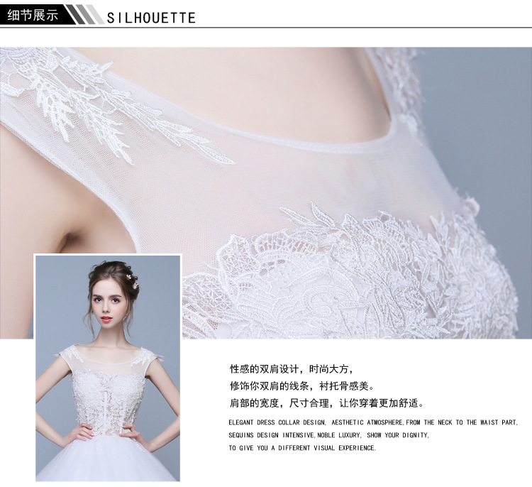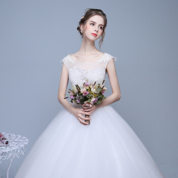 兄姿秀ウェルディ・レングス新婦夏新款コリアスターリング双肩ウェディングドレス妊妇大きサズ新婦ウェディングベール米白色M