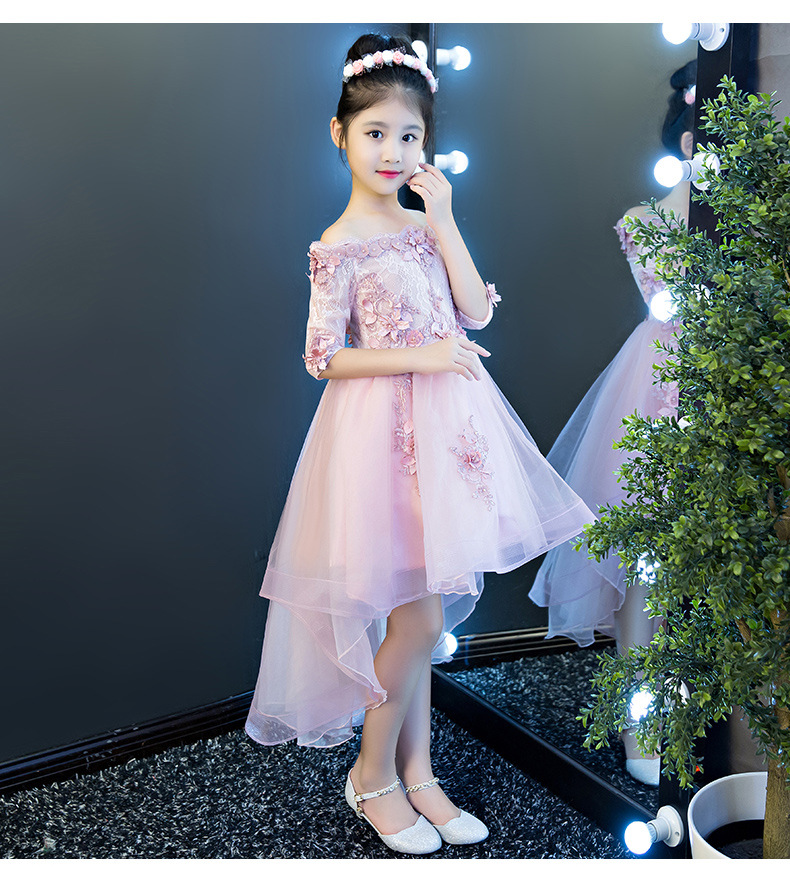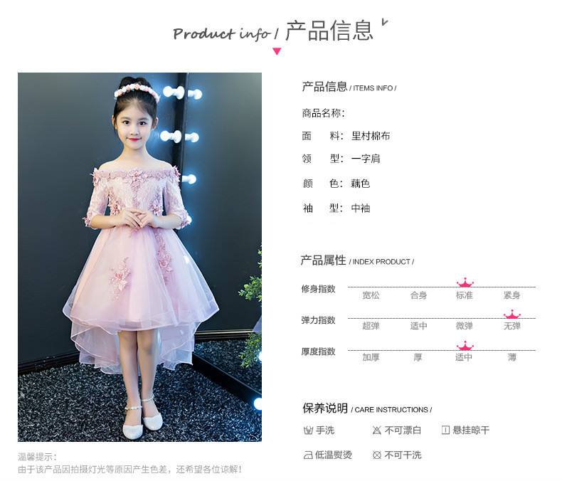 中小女童プリンセススカート子供ショー六一出演はドレスアップで大同学生のウェディングドレスペ-ジガ-ルン蓬紗司会誕生日夜ドレスレンコンピンクローリング130 cm