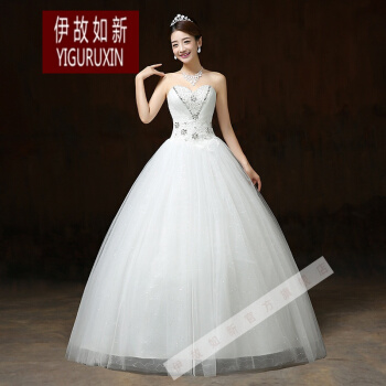 2019新型ファッションビスティングウエディングドレス新婦結婚ドレスムスリーム影楼秋春白色L