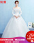 Yishafeinaウエディティーンドレス2019新型冬の綿の厚い手保温オフシショルダー新婦長袖ロールウェディングドレス秋冬型白XL