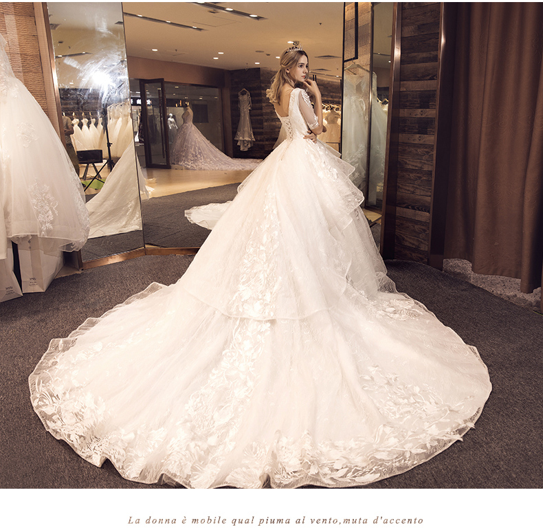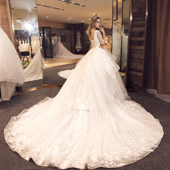 SHIGUANGBEANウェディングドレス2019新型洋風豪華ドレン結婚宮廷新婦ナチェルウェルディーベルト袖VネックホワイトローグL