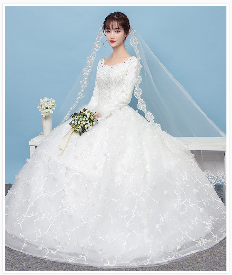 ニーメイオウウェディングス2017新型冬ウェディングベール厚い手冬服新婦長袖ローンググ保温秋冬型ウェディングドレス白いM