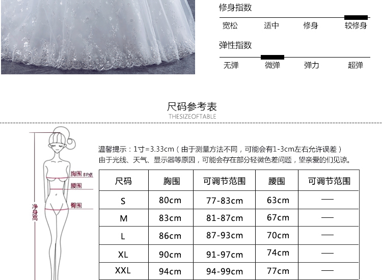 ウェディングドレスはとてもいいです。身長160体重98肩幅37、Lサイズを選ぶのがちょうどいいです。初めて選んだM号の後ろに帯を結ぶ位置が少し痩せています。カスタマーサービスに連絡しました。無事に払い戻しを完了しました。またLサイズを撮りました。三日間撮りました。服は全体的にとてもいいです。上半身がちょっと硬いです。ビーズと裏地を嵌めて定型化するべきです。プレゼントはとてもそろっています。スカートは试着前にはがすとき、どのように畳むかを见て、使いやすくて収纳します。スカート、キュロットは全部で半日かかりました。