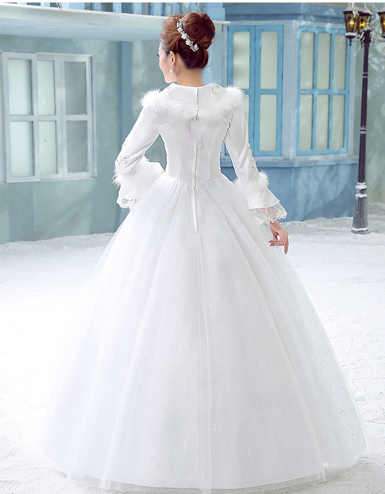 Yishafeina 2019秋冬ウェルディ新型长袖ローリング冬型厚手保温新婦セレス白色XL