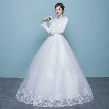 Yishafeina冬ウェルディー2019新型新婦結婚式コリアス厚手秋冬型ロングー保温長袖冬女白色L