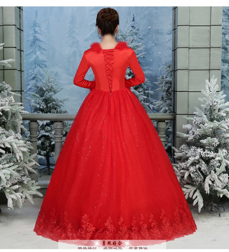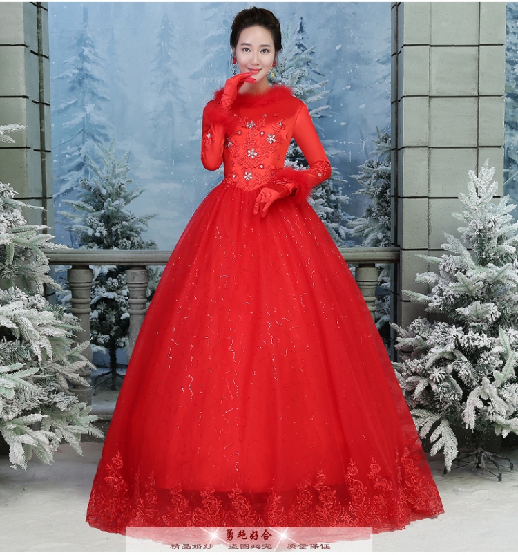 勇艶好合2019秋冬ウェディングディングディングディングディングの新型長袖コリアスタの冬型新婦の結婚式のセレム厚手のウェディングドレスの赤いM