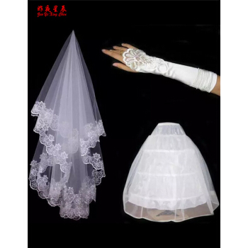 昨夜の星のウェディングドレスの三点セットは白いペチコートの手袋のベールの白を大ヒットしました。