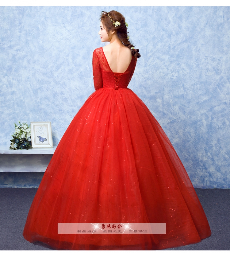 勇艶好合新婦結婚ウェディングウェルディは、新しいモデル2019赤いウェディングドレスの中でスリーブスイムの秋冬型ウェディングドレスを注文しました。