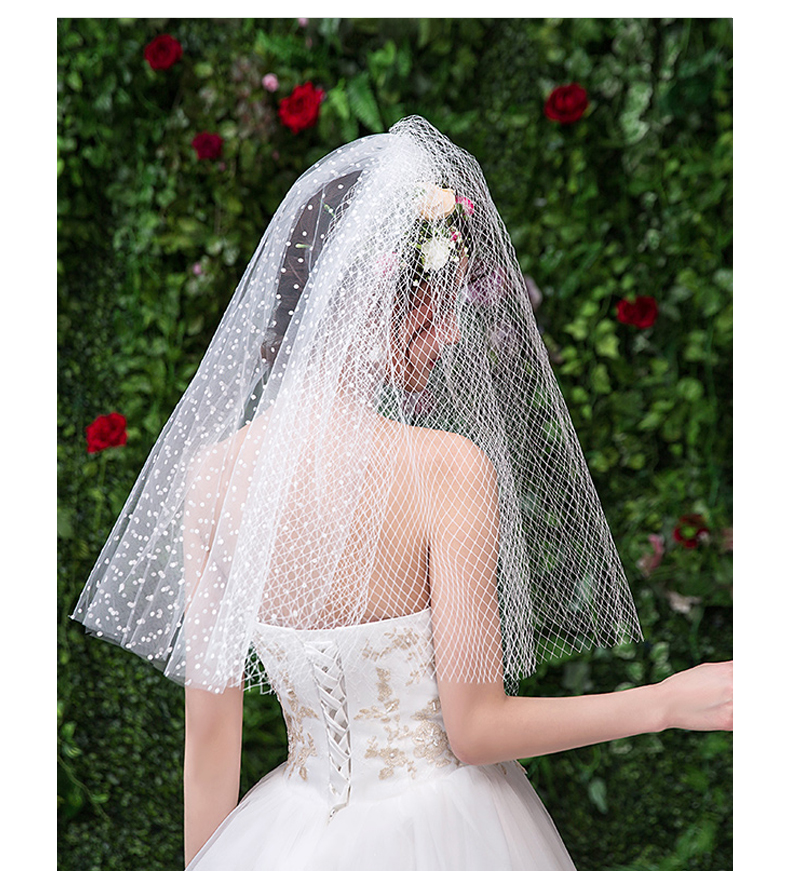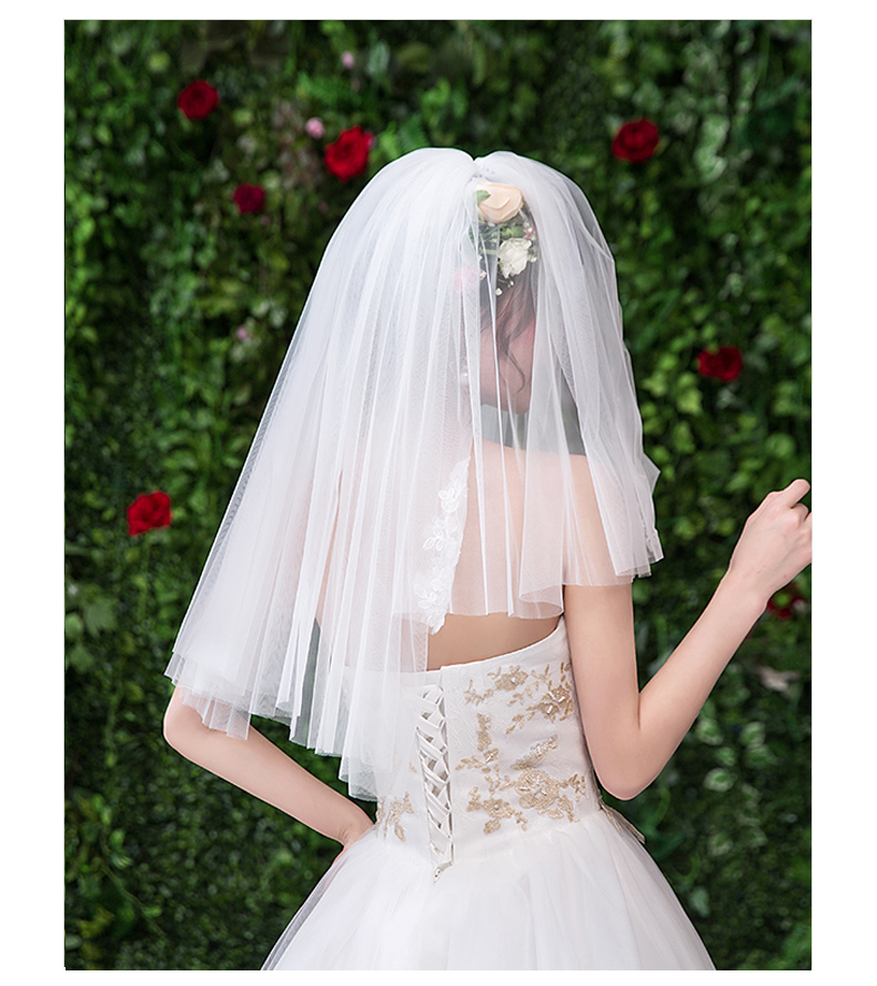 首纱ウェディングベールのショートモデルの撮影でネトールの有名人の新妇头纱ふわわわ撮影道具ネトートの有名人が旅して撮影したショートフィルムの白い多层レーザー写真2019年春夏新款四层点网+大沫网-T 601 cm-80 cm