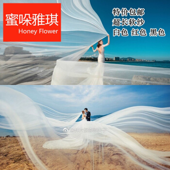 蜜bi雅琪10メートルの新しい婦のベールの薄い翻る細い紗の影楼のウェディングベールの撮影撮影撮影撮影の砂浜のロケの道具のウェディングベールの白色の10メートルの長さX 1.6幅の175 cm以上