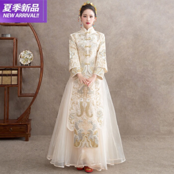 ウェルディドレス白纱秀禾服新婦2019新型の結婚チャイナドレスの乾杯時間はドレス・ウェンディング時代の嫁入り服の中華風鳳冠霞_シャンパン色XLを使います。