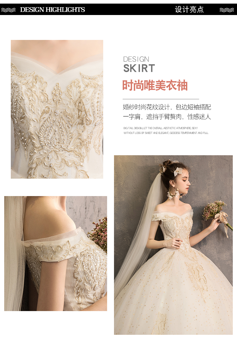 ホワイト台湾型ドレスウェディング新婦ドレス白紗新商品2019新式結婚式ロングー宮廷オフスタンドレスム女性のためのトレインアイテムL