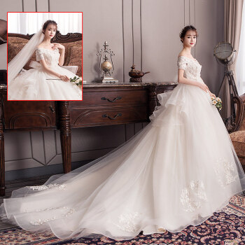 2019新品のウェルディディドレス2019新婦のハイウエストの大きいサーズ太ったmm加肥斯200斤オフスタンドレーウエディングドレス浅シャンパン色ローグモデル+4 XL