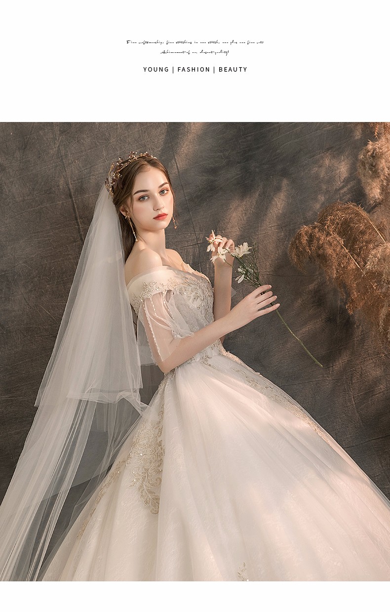 ウェディングドレス女性2019新款新款新妇ちびっこドレンラグジュアリーナイルTIKTOK同じスタールフレプリンセスオーフドレンL