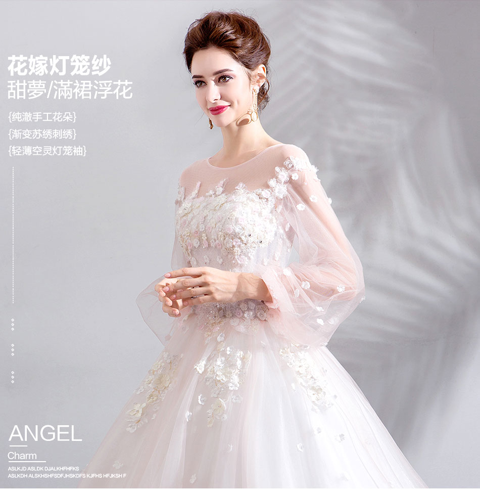 仙気をくすぐる幻想的なナチェル立体花宮廷長袖の新婦ウェルディー白色XL