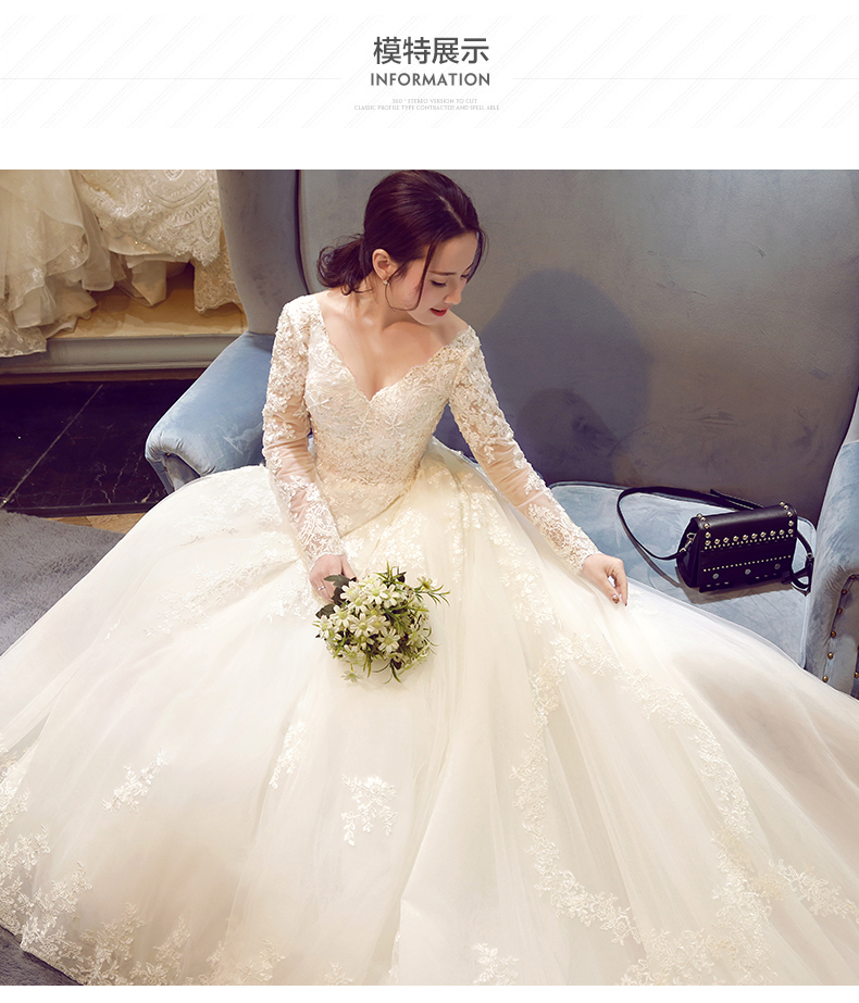 ウェディングドレス2019新型洋風オフュードドナチーラル高腰妊婦長袖新婦長のドレーン大好きなサーズス中袖ドレン送六点セットM