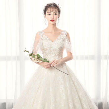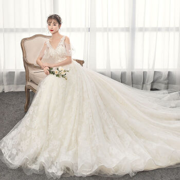 ウェルディドレス新婦春夏新婦結婚大好きなセイズドリームプリンセストレイン高腰遮腹胖mm米白ローグモデルL